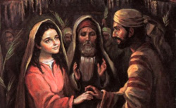 Ito ang pangyayaring napapaloob sa pagsilang ni Jesucristo. Ipinagkasundo kay Jose ang kanyang inang si Maria pero bago sila nagsama bilang mag-asawa nagdadalantao na siya gawa ng Espiritu Santo. Kaya binalak ni Jose na hiwalayan nang lihim ang kanyang asawa. Matuwid nga siya at ayaw niya itong mapahiya.