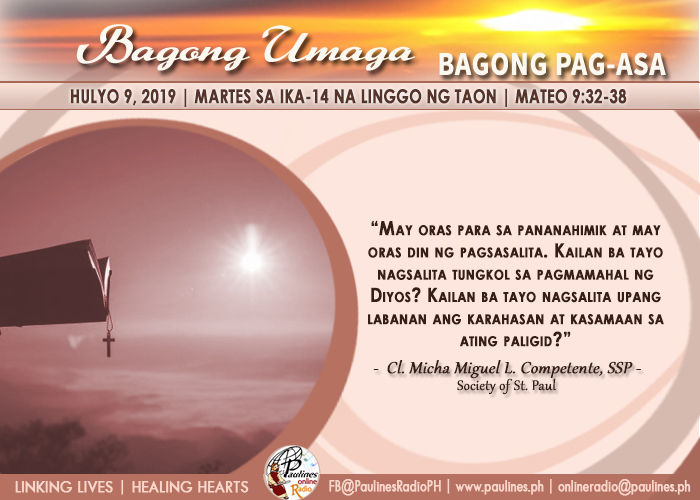 EBANGHELYO: MATEO 10:1-7 Tinawag ni Jesus ang Labindalawa niyang alagad at binigyan sila ng kapangyarihan sa maruruming espiritu para palayasin ang mga ito at pagalingin ang lahat ng sakit at karamdaman. Ito ang pangalan ng labindalawang apostol: una, si Simong tinatawag na Pedro, at ang kanyang kapatid na si Andres; si Jaime na anak ni […]